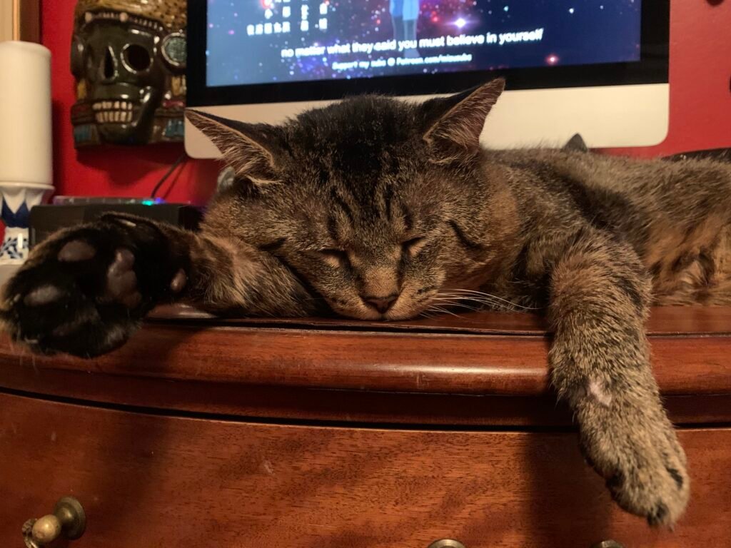 Meet my roommate Mr. Gato, he’s a playful and curious feline with a knack for finding cozy spots to nap and an insatiable love for treats and “talking”. With his sleek fur and mischievous eyes, he brings joy and laughter to every room. Gato’s favorite activities include chasing toys and purring on the couch!
